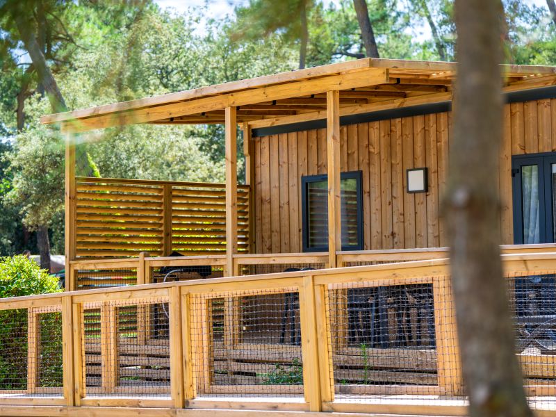 Découvrez tout nouveau notre mobil-home premium dernière génération de 35 m2 pouvant accueillir jusqu’à 6 personnes. Climatisation, stores occultants pour un sommeil optimal, moustiquaires dans les 3 chambres (4 lits simples 80 x 190 cm, 1 lit double 160 x 200 cm) avec draps et serviettes inclus, lave-vaisselle, grande terrasse semi-couverte privative de plus de 20m2, superbe intérieur moderne et sa décoration actuelle, salon avec TV… Retrouvez une multitude de prestations haut de gamme pour des vacances premium inoubliables en famille !